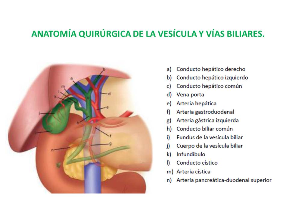 Anatomía quirúrgica de la vesícula y vías biliares.